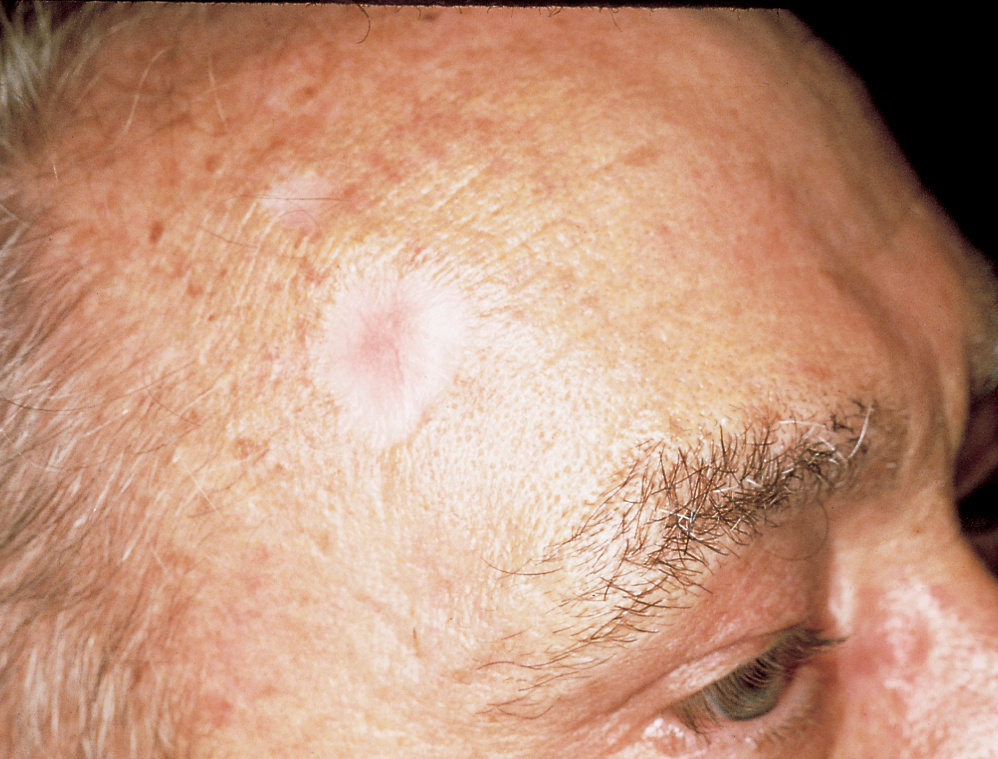 Where is it usually found? These tumors usually appear as firm, painless lesions or nodules on a sun-exposed area (about half of the time on the head and neck, and frequently on the eyelids).