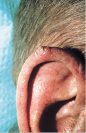 Where is it usually found? These cancers most often develop on skin areas typically exposed to the sun, especially the face, ears, neck, scalp, shoulders and back.