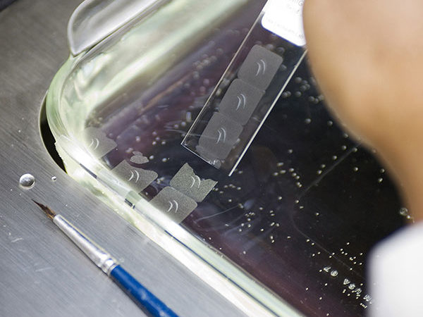 Ever wonder what happens to that little piece of skin after it’s removed from your body? The tissue, which has been “fixed” so it doesn’t change or degrade, is transported to the lab in a small jar or bottle. It can stay at room temperature and doesn’t need to be refrigerated. Once at the lab, it is logged in, and the specimen goes through several steps of processing to help the dermatopathologist analyze it under a microscope to determine a diagnosis. See our slide show. (Lab photos courtesy of Yale Department of Dermatology).