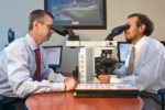 A tiny section of skin, sliced, stained, placed on a glass slide and magnified on a special microscope, may look pretty, but it could reveal skin cancer. Photo by Yasu + Junko; microscope provided by Accu-scope.