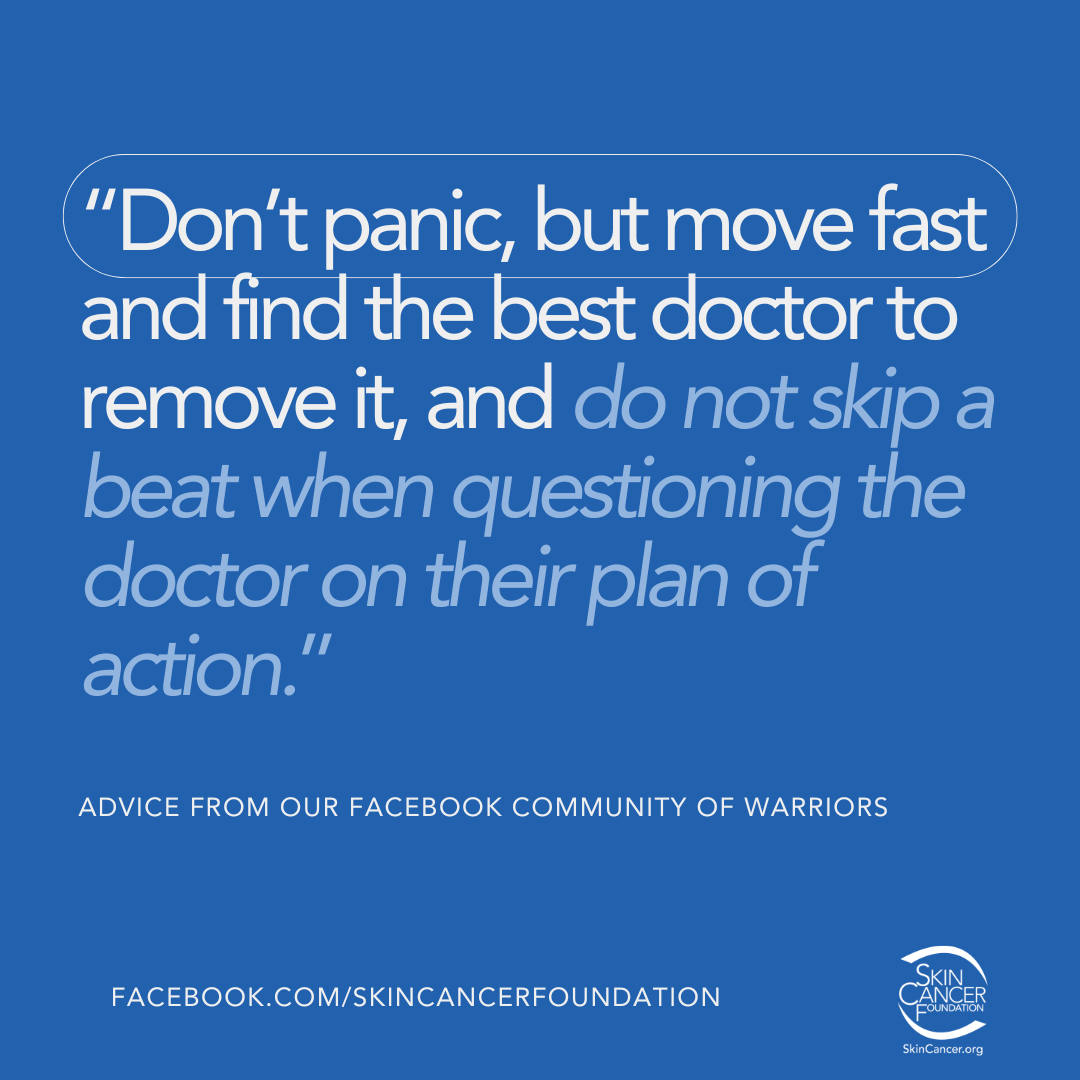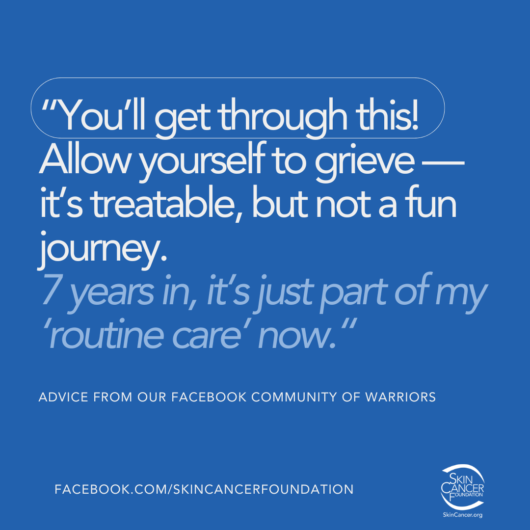 - Take a deep breath. You’re stronger than you think, and you will get through this. See below for advice from people who have battled skin cancer and want to support you.