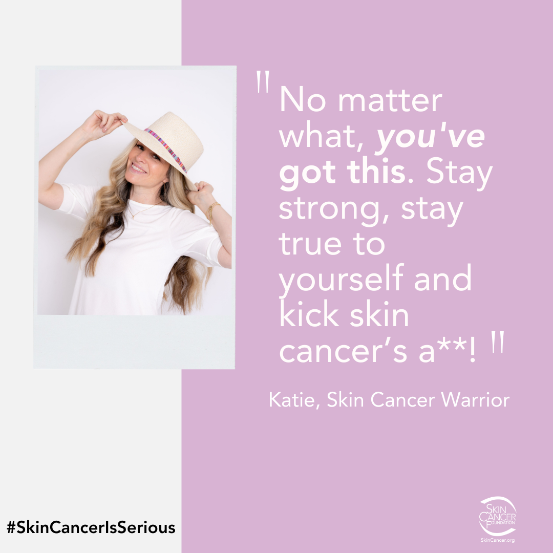 Katie’s message to all skin cancer warriors: “Do things for yourself. Set healthy boundaries. Practice sun safety. You have so many people on social media to support you. You’ve got this!”