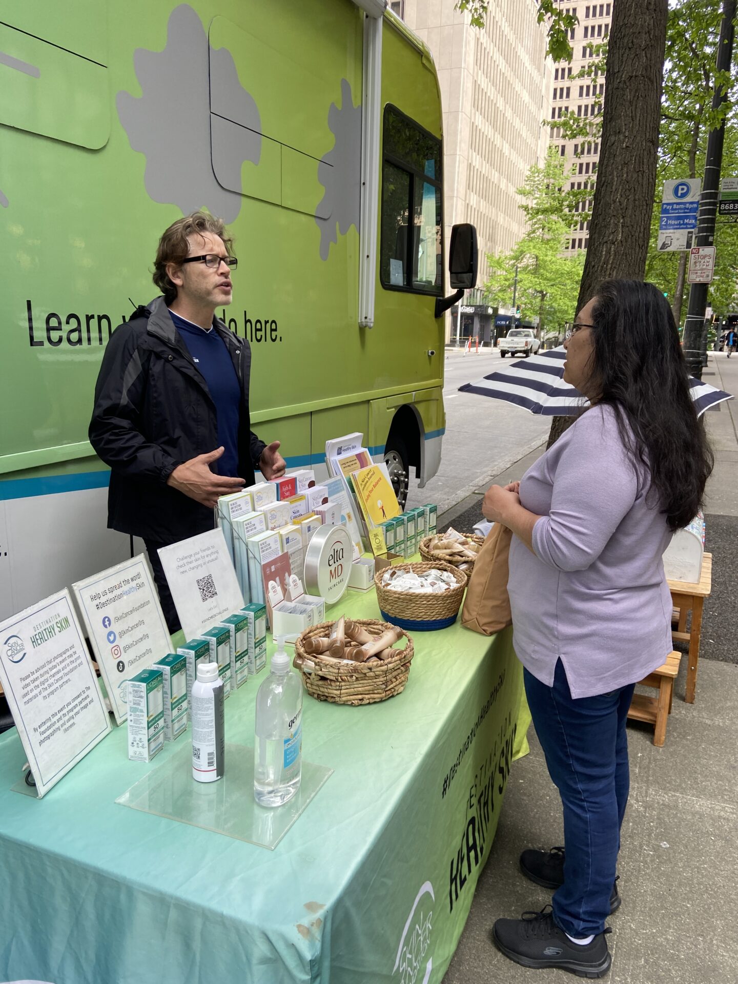 From May 1 to 3, we kicked off Skin Cancer Awareness Month with screening events in Tempe. We are grateful to the dermatologists from Saguaro Dermatology, who once again volunteered their time to screen patients. The first day, Carsten R. Hamann, MD, PhD, performed a full day of skin exams and the next day we welcomed his brother, Dathan Hamann, MD, to the RV. The doctors had a brotherly competition to see who could screen the most people (Dathan: 58; Carsten: 60). On May 3, Michael McBride, DO, screened 56 people throughout the day, and identified a suspected melanoma.