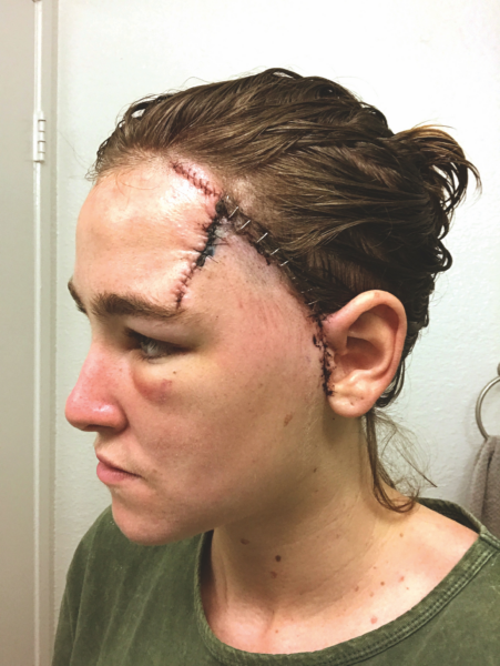 Dani shows the extensive reconstruction after her surgery. She says she could feel the nerves regenerate about a year later, and she has since regained full feeling on that side of her face. | Photo credit: Mattison Fetters