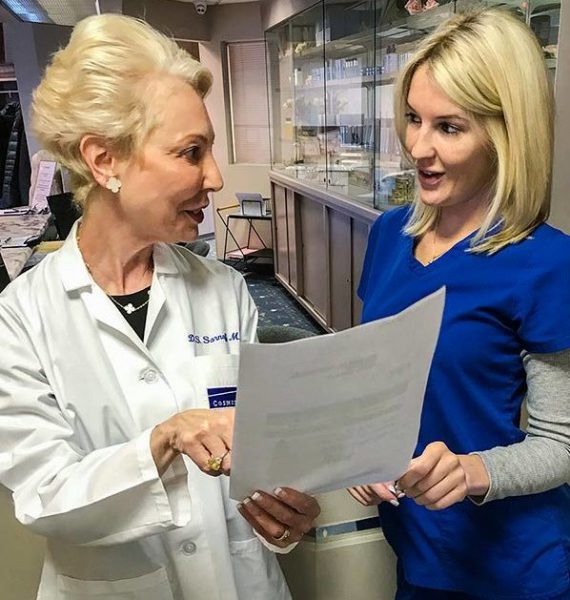 Although Nicole (right) previously worked at another dermatology office, she says, “I learned so much more about the dangers of tanning from Dr. Sarnoff (left, in her Long Island office). As the president of The Skin Cancer Foundation, she really knows her facts!”