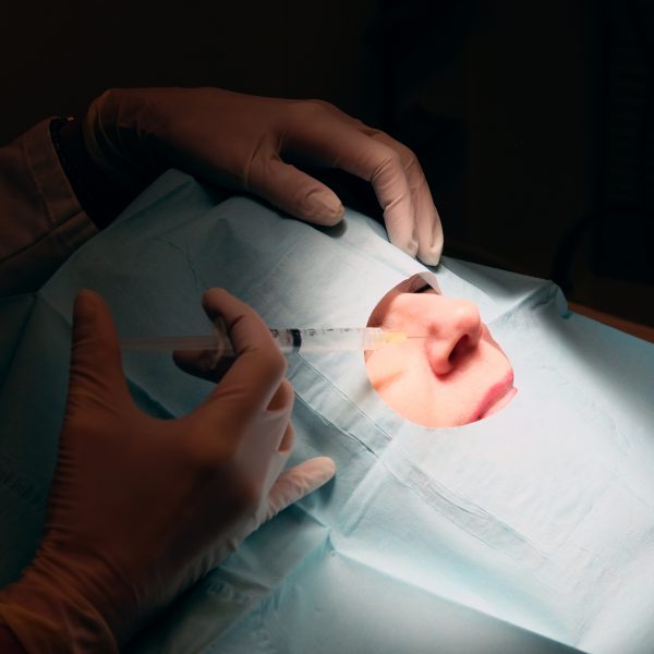 Antes de comenzar la cirugía, el Dr. Kauvar inyecta un anestésico local.