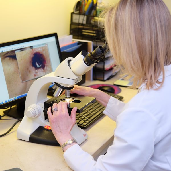 Como puedes imaginar, todo esto lleva su tiempo. Si necesita varias rondas, puede tardar varias horas. Pero el tiempo invertido vale la pena. El proceso de Mohs examina el 100 por ciento de los márgenes del tejido bajo el microscopio, mientras que en la escisión quirúrgica estándar solo se examina microscópicamente el 1 por ciento de los márgenes. La cirugía de Mohs también conserva la mayor cantidad de tejido sano, dejándole la cicatriz más pequeña posible. El procedimiento es rentable porque la extirpación del cáncer, la evaluación microscópica y, en la mayoría de los casos, la reconstrucción de la herida se realizan en una sola visita, y la tasa de curación es de hasta el 99 por ciento.