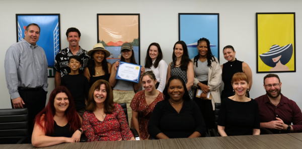 Kaili y su familia en la sede de The Skin Cancer Foundation en Nueva York