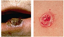 Carcinomas de células escamosas apresentam-se como machucados persistentes, ásperos, descamativos e espessos, que podem sangrar em caso de trauma local. Muitas vezes são parecidos com verrugas e, às vezes, assemelham-se a machucados abertos com bordas levantadas e crostosas.