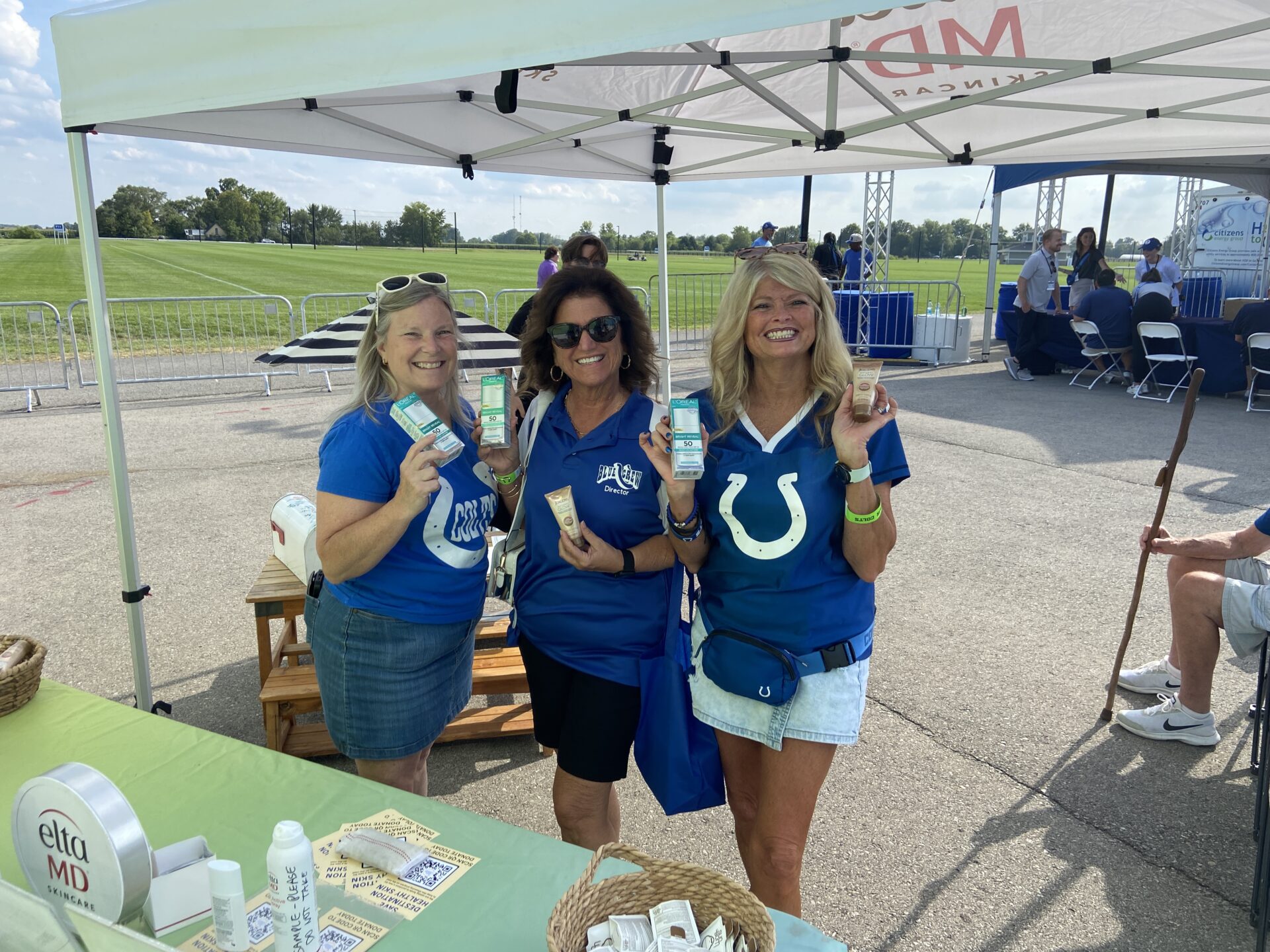 - Colts-Fans zeigen die Sonnenschutzproben, die sie bei unserer Veranstaltung in Indianapolis gekauft haben.