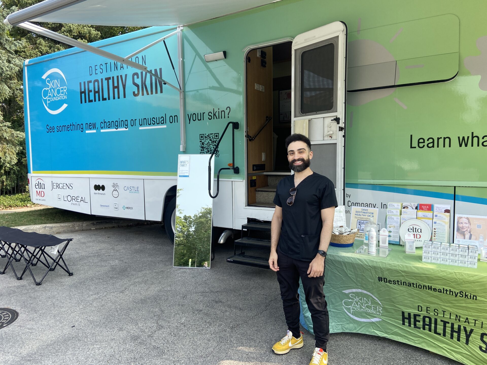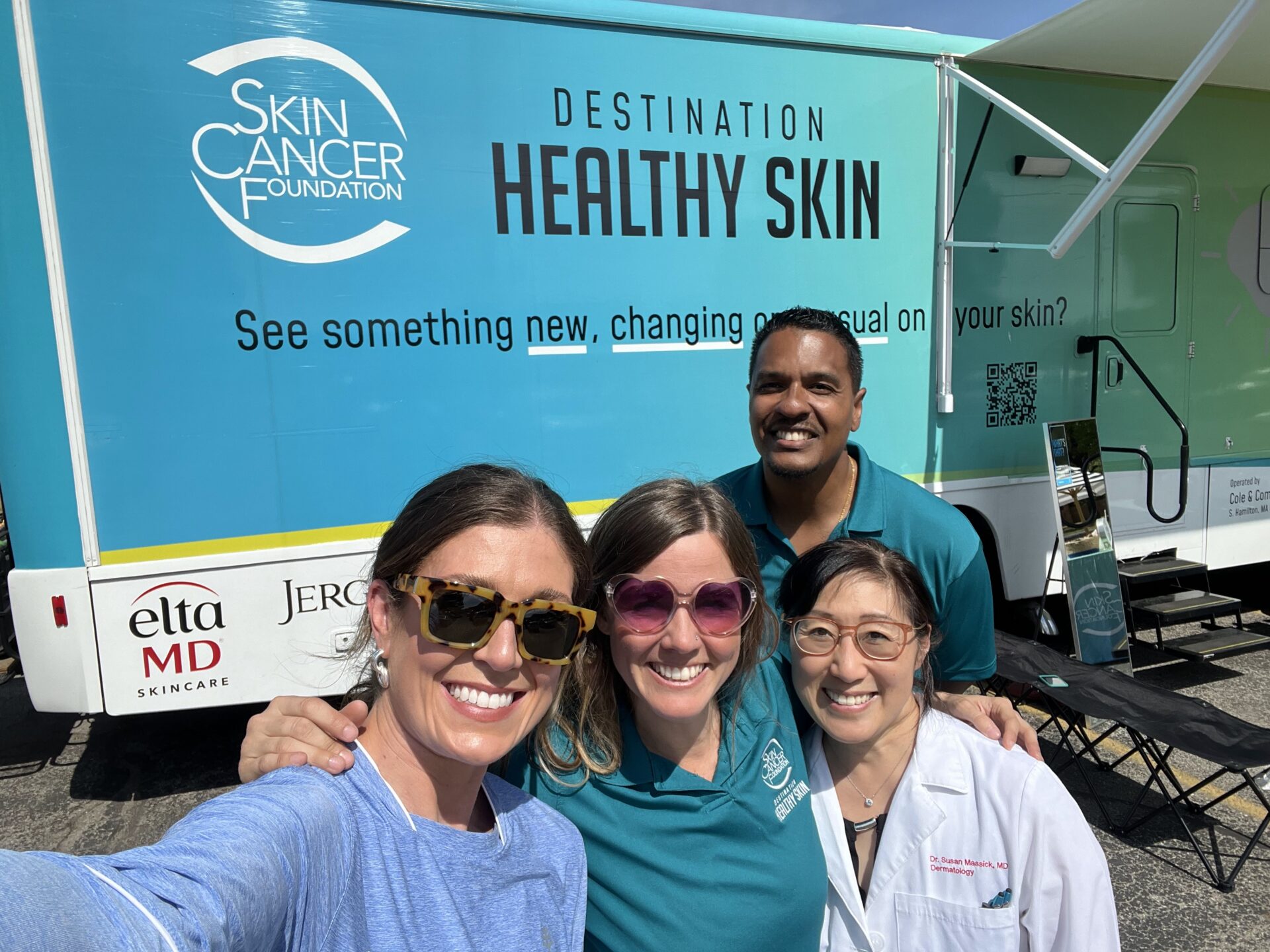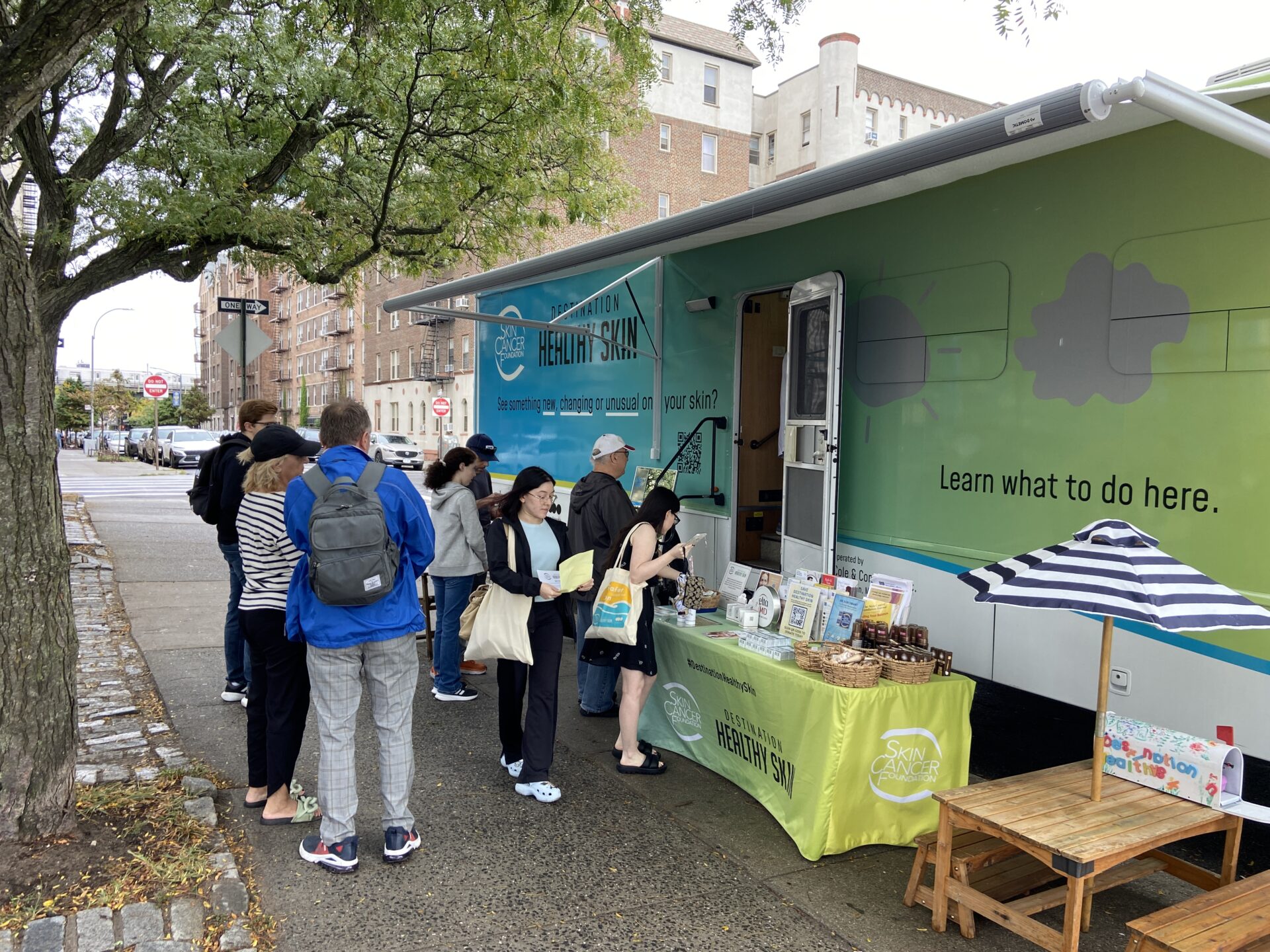 Als der September zu Ende ging, kehrte Destination Healthy Skin nach New York City zurück. Als Sitz der Stiftung erweist sich New York immer als spannender und lohnender Veranstaltungsort für DHS-Veranstaltungen! Insgesamt 11 freiwillige Dermatologen und ihr unterstützendes Personal nahmen fast eine Woche lang an Vorsorgeuntersuchungen teil. Das Wohnmobil war sowohl in Midtown Manhattan als auch in Brighton Beach, Brooklyn, geparkt, wo mehr als 1,000 Menschen an den Veranstaltungen teilnahmen, um an Vorsorgeuntersuchungen teilzunehmen, Sonnenschutz Proben und erfahren Sie mehr über Hautkrebs.