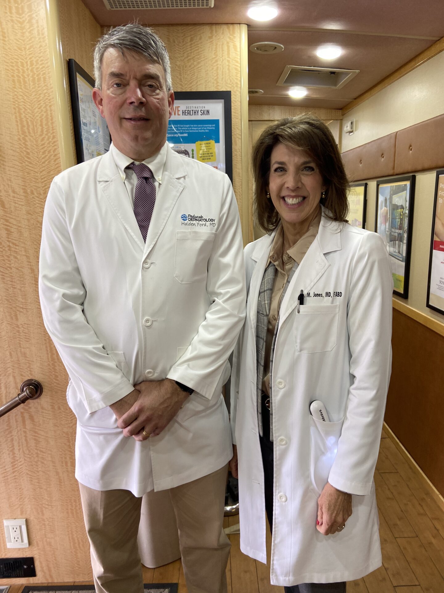Als nächstes besuchten wir Dothan, Alabama, wo Jeffrey Stricker, DO, zum zweiten Mal in Folge als Freiwilliger mitwirkte. Danach machten wir unseren ersten Stopp in Kentucky seit vielen Jahren – Evelyn Jones, MD, und Haldon H. Ford, MD, führten in Paducah Screenings durch und fanden zwischen der Identifizierung von 46 möglichen Hautkrebsarten und Krebsvorstufen Zeit, die Öffentlichkeit aufzuklären. Dr. Jones sprach mit den Lokalnachrichten und teilte den Zuschauern Warnsignale für Hautkrebs mit.