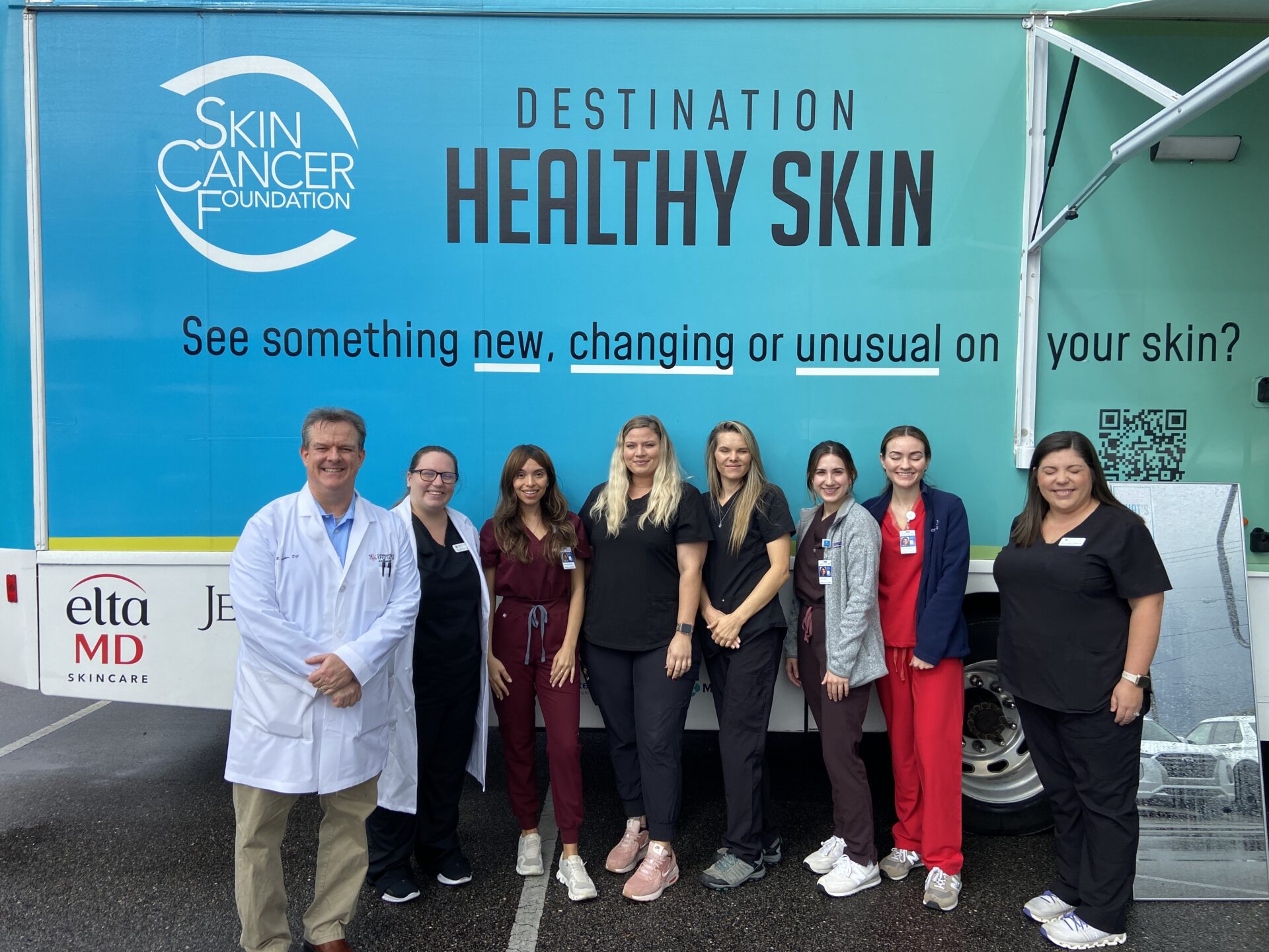 Nach einer kurzen Veranstaltung in Athens, Georgia, bei der Dr. Patrick Retterbush, MD, 19 Personen in der örtlichen Bibliothek untersuchte, machte sich das DHS-Team auf den Weg in den Sunshine State. Wir machten zunächst Halt in Zentral- und Südflorida und führten drei Tage lang Untersuchungen in Orlando und Miami durch. Trotz des brutal schwülen Wetters stellten unsere freiwilligen Ärzte fast 40 vermutete Hautkrebserkrankungen und Krebsvorstufen fest, darunter drei Melanome.