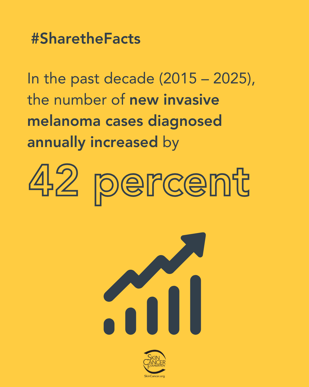 Be sure to tag us @SkinCancerFoundation on Facebook and LinkedIn, and @SkinCancerOrg on Instagram, Threads, Pinterest, X and TikTok. Hashtags to use: #SkinCancerIsPersonal,#SharetheFacts and #ThisIsSkinCancer.